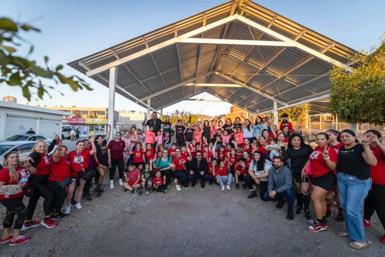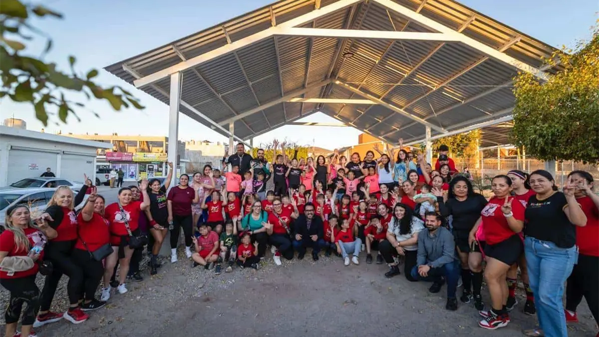 El alcalde Juan de Dios Gámez Mendívil reafirmó ante habitantes de Alturas del Sur su compromiso de continuar brindándoles espacios óptimos para el sano esparcimiento. En breve iniciará la instalación de una nueva techumbre adicional a la recién instalada, así como sanitarios en la unidad deportiva del sector.