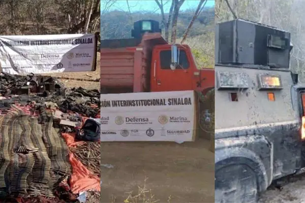 ¡Hasta un dompe blindado! Decomisa Marina arsenal y 8 vehículos en Cosalá