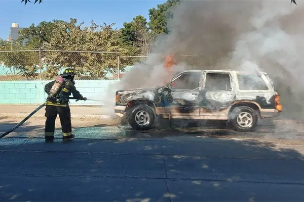 Un fuerte incendio se registró la tarde de este sábado en un vehículo que circulaba por la avenida libramiento tres frente al sector Valles del Ejido, del puerto de Mazatlán.
