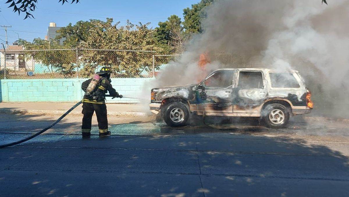 Se trata de un vehículo Ford Explorer, que quedó completamente calcinado, luego de qué las llamas alcanzaron toda la unidad, dejándola en pérdida total, aunque no se reportaron personas lesionadas, ya que alcanzaron a salir del vehículo los ocupantes.