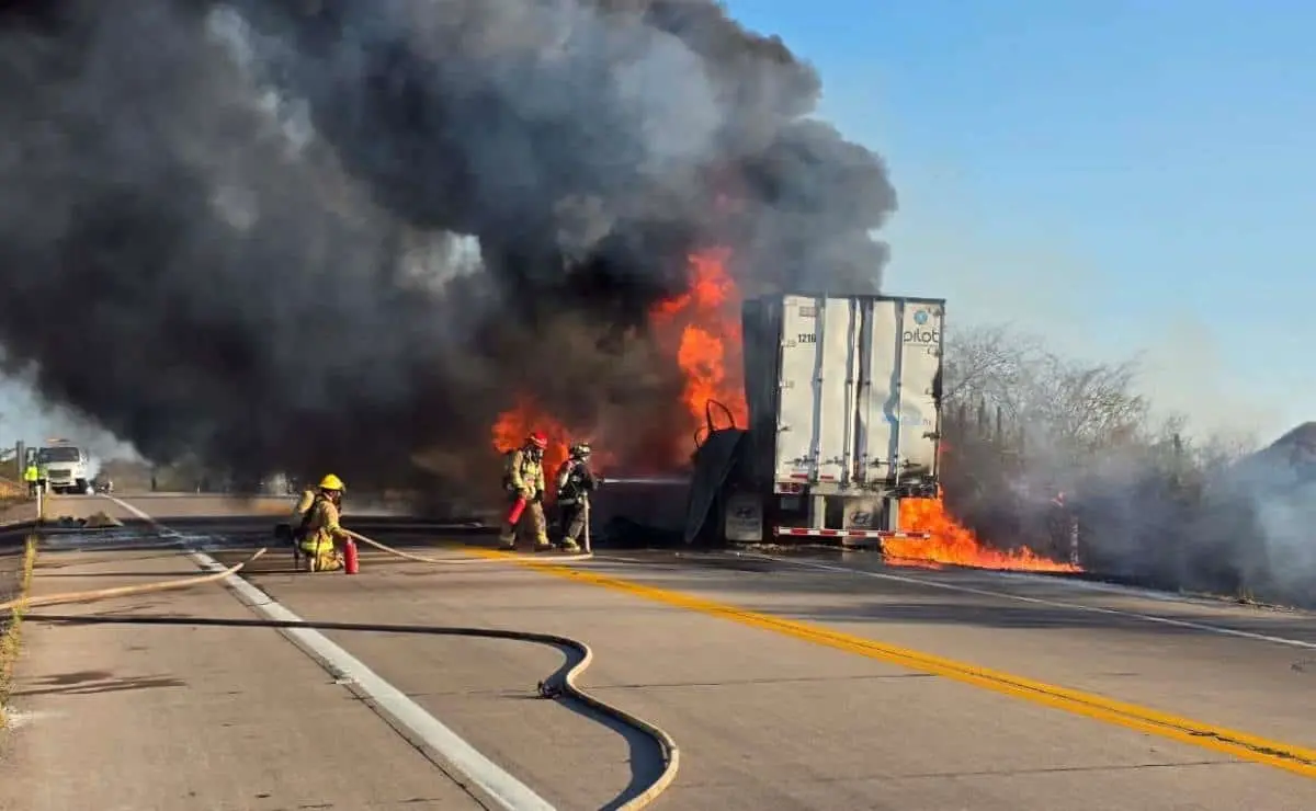 Un fuerte accidente provocó el incendio de un tráiler, cuando este circulaba por el kilómetro 230 de la carretera Mazatlán-Tepic.