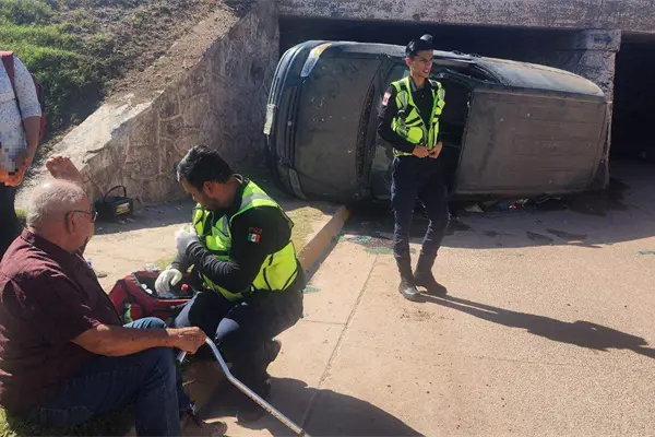 Un adulto mayor resultó herido y fue atendido por paramédicos después de volcar debajo del sifón del puente de la sindicatura de San Miguel Zapotitlán en Ahome. El reporte inicial indicaba que se había caído del puente y que había personas atrapadas.
