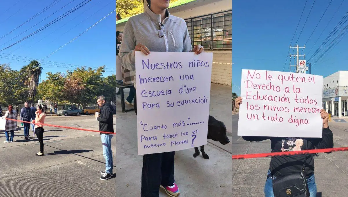 Padres de familia de la escuela primaria Gabriel Leyva Solano, ubicada en la colonia Infonavit Macapule, realizaron este martes una manifestación bloqueando por un tiempo el bulevar Justicia Social en exigencia del restablecimiento del suministro eléctrico en el plantel, que no cuenta con luz desde el inicio del ciclo escolar.