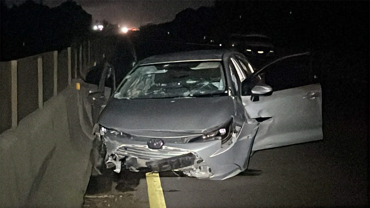 El automóvil Corolla quedó impactado contra el muro de contención en sentido contrario de la carretera con rumbo hacia el sur a pocos metros de una llantera que hace pocos días fue atacada a balazos y quemada por sujetos armados.
