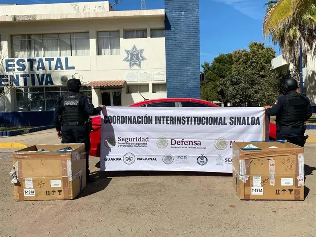 Las autoridades indicaron que tras recibir una alerta del C4i, la Secretaría de Seguridad Pública de Sinaloa, a través de la Policía Estatal Preventiva, en coordinación con la Secretaría de la Defensa Nacional, la Guardia Nacional, la Secretaría de Marina, la Fiscalía General de la República y la Fiscalía General del Estado, recuperó una unidad motriz robada y cajas con paquetes en su interior.