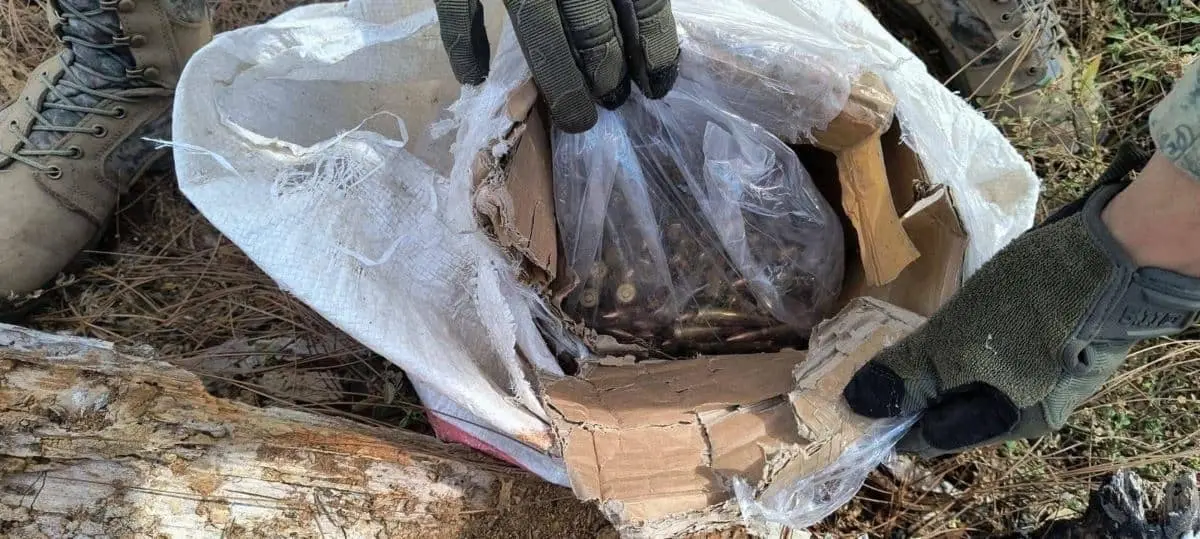 Los efectivos militares al realizar un reconocimiento minucioso por el área, se encontraron dos armas largas, cargadores, cartuchos y equipo táctico.