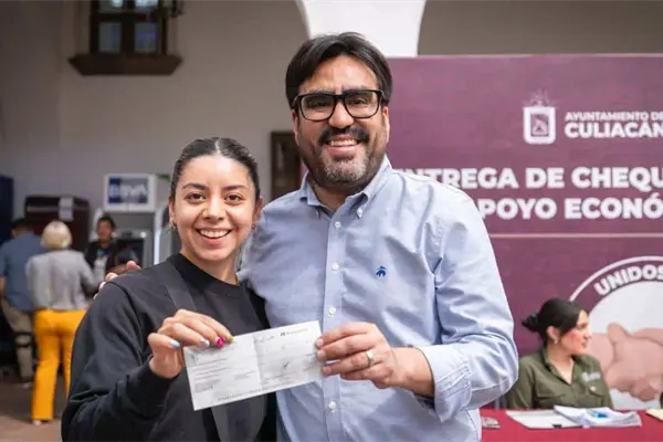 El alcalde Juan de Dios Gámez Mendívil continúa con la entrega de cheques del Programa de Apoyos Económicos Emergentes, beneficiando a comerciantes y vendedores en la vía pública.