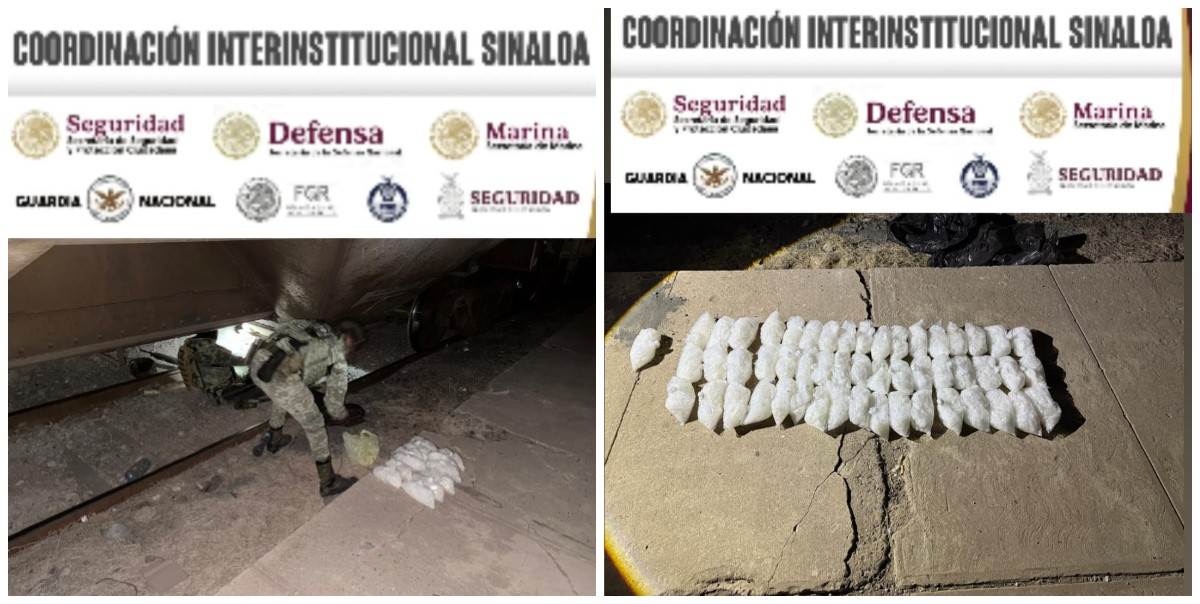 Elementos de la Secretaría de la Defensa Nacional, Guardia Nacional, Secretaría de Marina, Fiscalía General de la República, Fiscalía General del Estado y Secretaría de Seguridad Pública Estatal aseguraron presunta droga en el vagón de un tren en el municipio de El Fuerte.