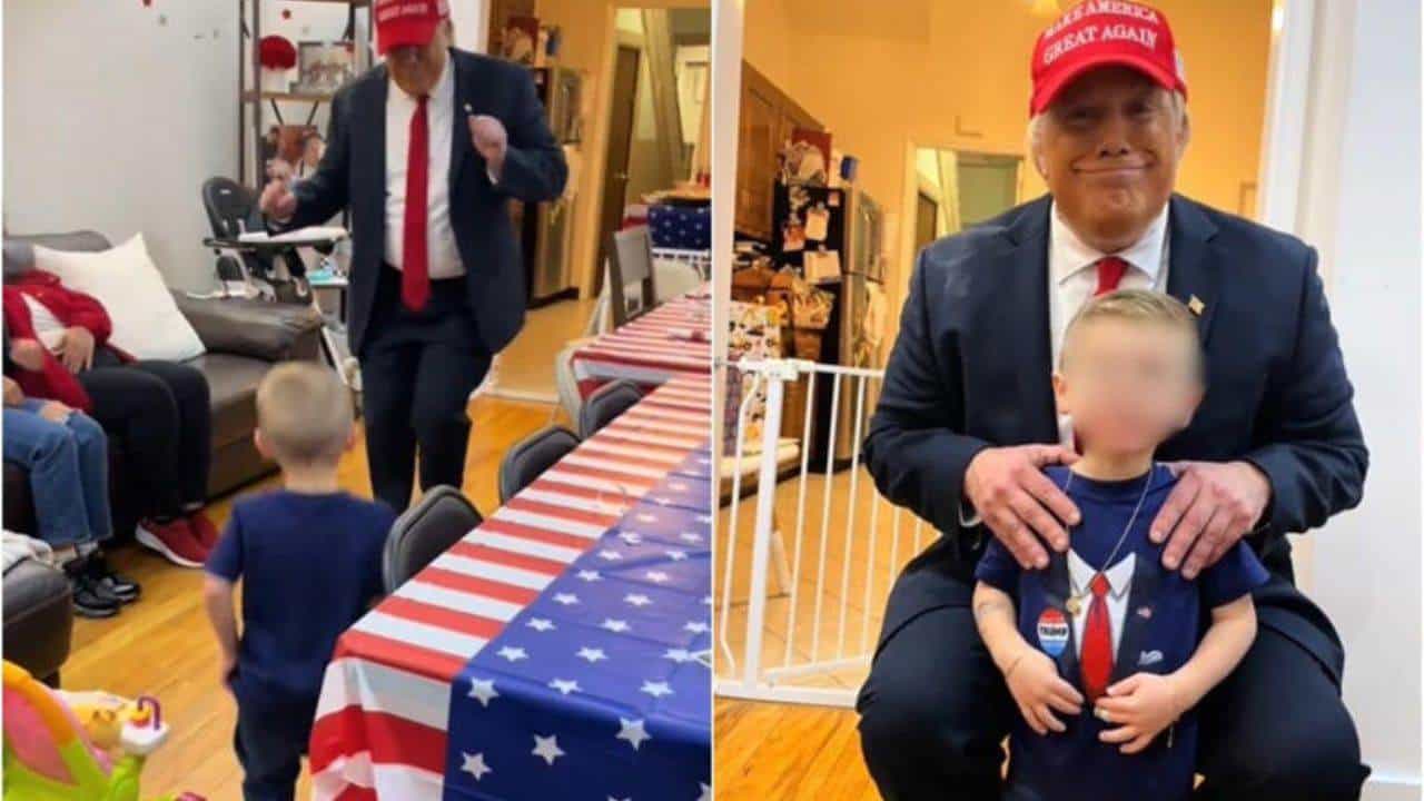 Pero a dicha fiesta acudió una persona el cual hace el papel de imitar a Donald Trump para felicitar al cumpleañero, siendo un pequeño niño quien al ver al hombre se emocionó al verlo.