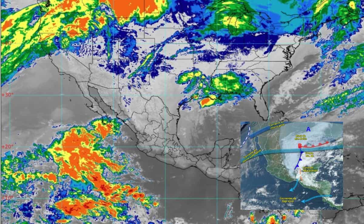 En el sureste de México, en estados como Yucatán y Quintana Roo, se esperan lluvias fuertes debido a al frente frío 28 sobre el Golfo de México y un canal de baja presión sobre la Península de Yucatán.