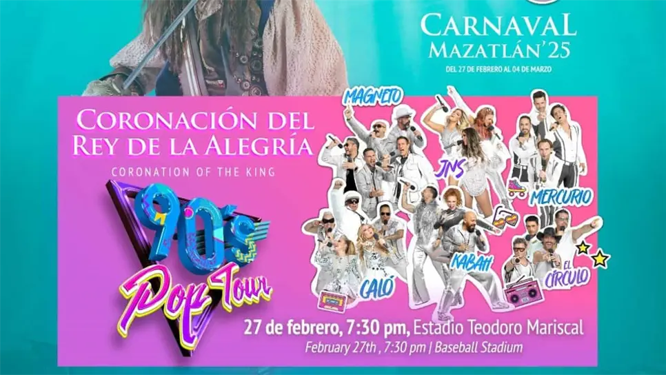 En este caso, será el espectáculo 90s Pop Tour, quienes amenizarán la noche de coronación del Rey de la Alegría este jueves 27 de febrero, fecha en que se había planeado la presencia de los cantantes Jorge Medina y Josi Cuen, con su espectáculo “Juntos”.