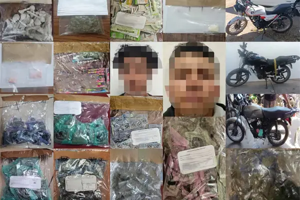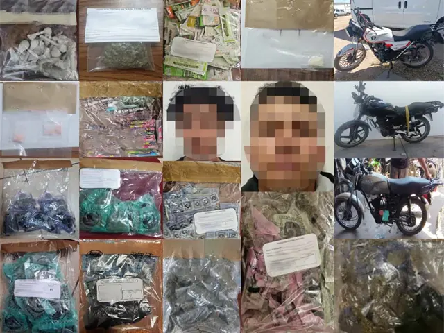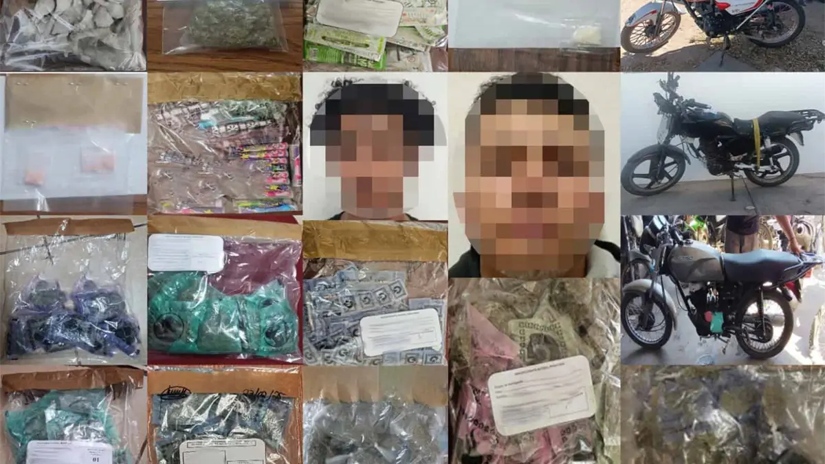 Además, fueron asegurados cinco motocicletas y un automóvil, presuntamente utilizados para la venta y distribución de sustancias ilícitas.