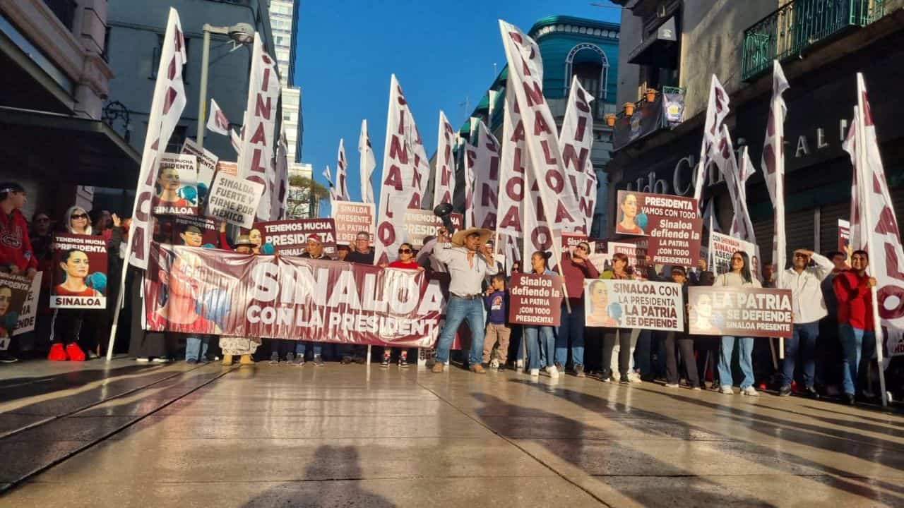 "Sinaloa con la Presidenta", "Con Sheinbaum Sinaloa asegura la defensa de la patria", "Sinaloa fuerte y firme por México", era lo que se leía en algunas de las pancartas.