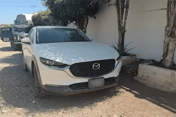 Mediante recorridos de seguridad, elementos estatales circulaban por distintas vialidades del municipio cuando localizaron, en la colonia antes mencionada una camioneta marca Mazda, modelo CX-30 de color blanco, que, al verificar su estatus en la base de datos de Plataforma México, arrojó que cuenta con un reporte de robo.