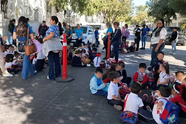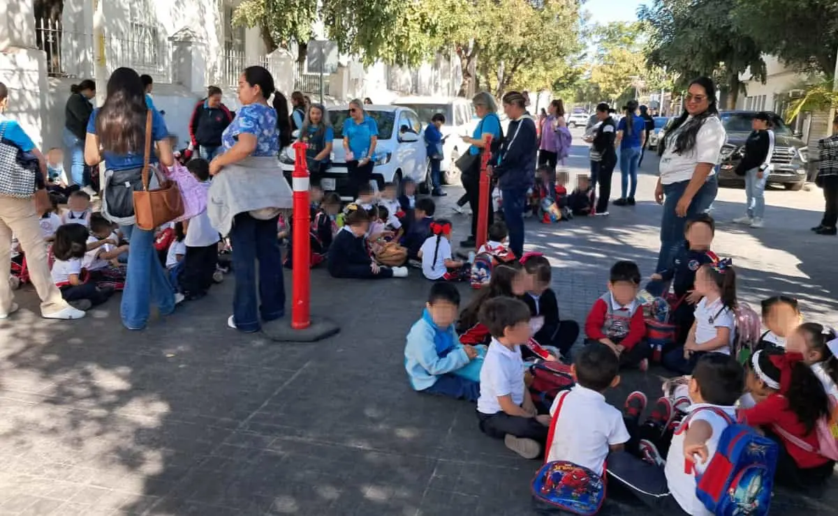 Tras la evacuación, los menores del jardín de niños fueron colocados por la calle Ruperto Paliza y Cristóbal Colón por los grupos de emergencia y el personal docente.