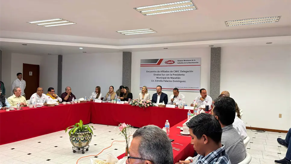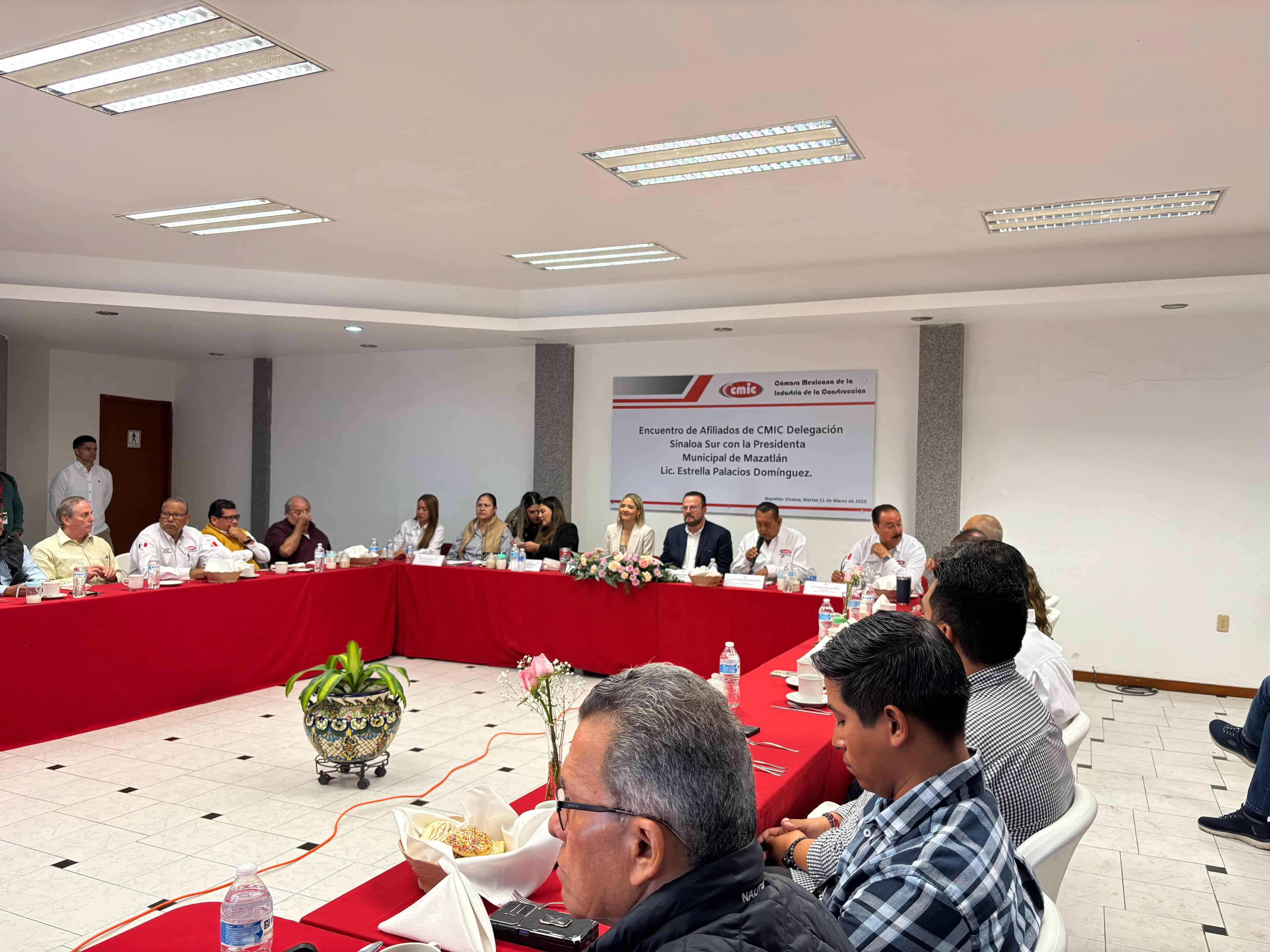 La Presidenta Municipal reafirmó el compromiso de su administración de trabajar de la mano con la CMIC en el marco del eje estratégico “Un Mazatlán moderno y sostenible”, que contempla la realización de 137 obras en 2025, con una inversión de 336.4 millones de pesos.