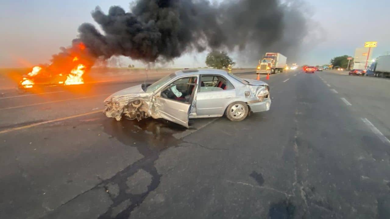 Un aparatoso accidente vehicular ocurrió la tarde de este viernes en la Carretera Internacional México 15, a la altura de la gasolinera GMV en la sindicatura de El Burrión, dejando como saldo un vehículo completamente calcinado y un hombre lesionado.