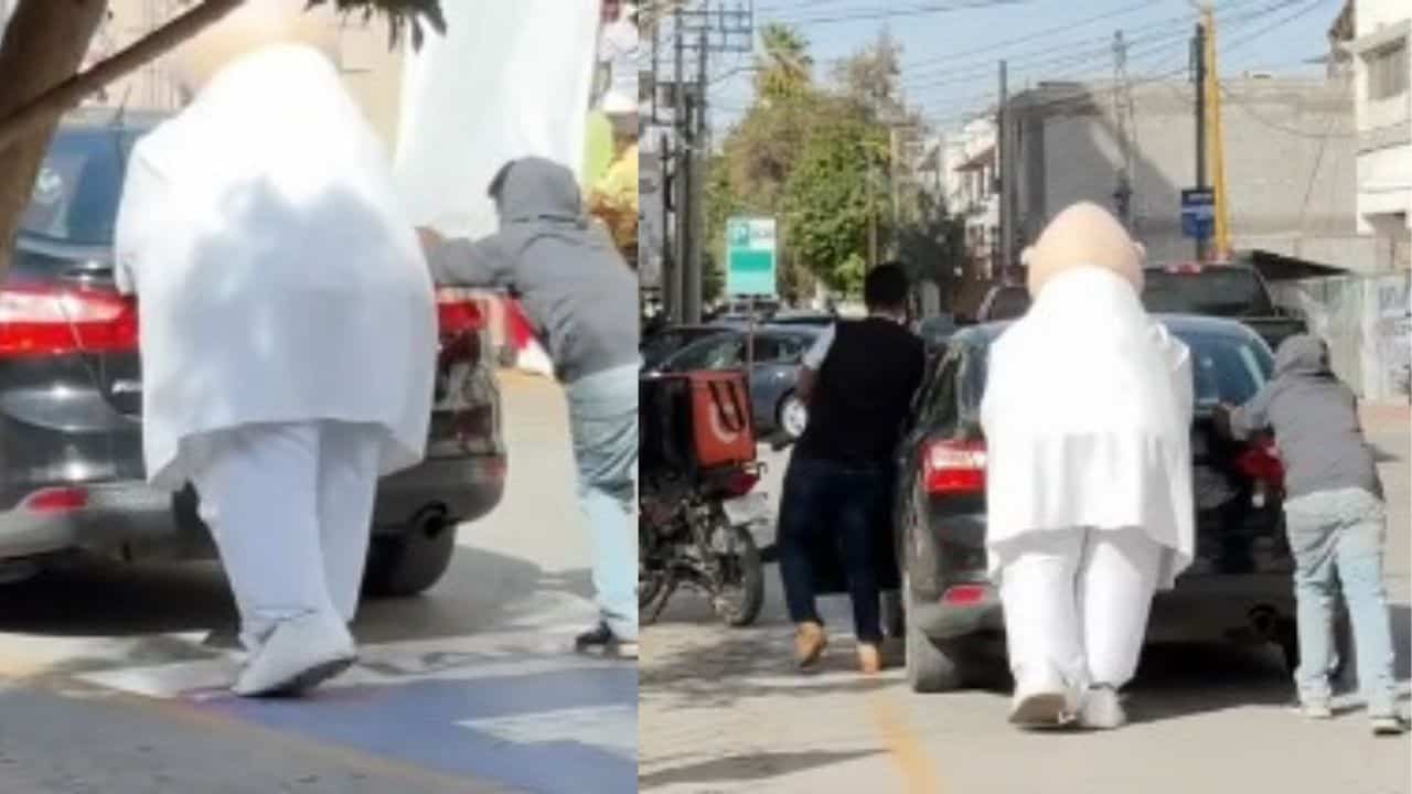 Fue a través de redes sociales en donde muchas personas se han dedicado a grabar a estas botargas bailando, saltando, o como sea, pero esta vez fue visto mientras ayudaba a un carro que estaba descompuesto en plena calle, demostrando que no solo atiende a personas, sino que a carros también.