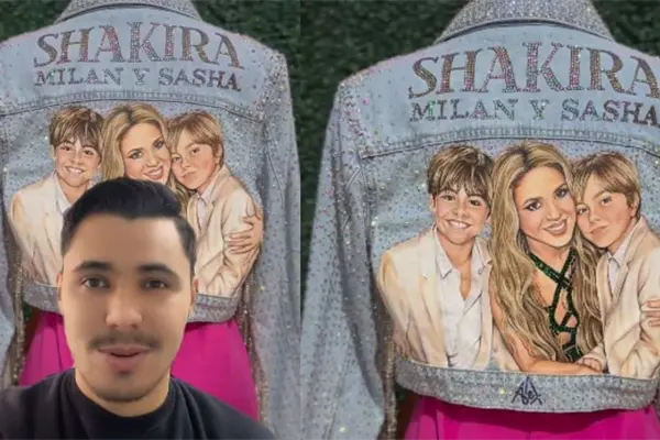 "Me dijo: ¿a poco tú la pintaste?', le dije: ‘sí, y esta que traigo puesta también’, me volteé y dijo: 'wow, vean nomás, tómenme una foto con esta chamarra'. Ella se tomó la foto con la chamarra, su personal era de: ‘ya, rápido, rápido’, porque el show tenía que iniciar. Tuve privilegio con ella porque hablé un ratito, me dijo: 'son mis niños (refriéndose a la pintura de Milan y Sasha), te adoro, muchísimas gracias, qué bonito regalo, eres un artistazo, me encanta, créeme que me la voy a poner'". Antes de ir, la persona del staff de la cantante que había hablado con el diseñador, les tomó una foto juntos. “Así que gracias a él tengo una foto con ella”.