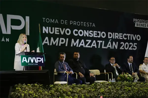 El sector inmobiliario es uno de los principales motores económicos de Mazatlán, porque genera empleos, impulsa la inversión y contribuye directamente al bienestar de las familias mazatlecas, afirmó la Presidenta Municipal, Estrella Palacios Domínguez, a la comunidad profesional inmobiliaria, durante la toma de protesta del Consejo Directivo AMPI 2025-2027, que encabeza Luciano Carrasco Altamirano.