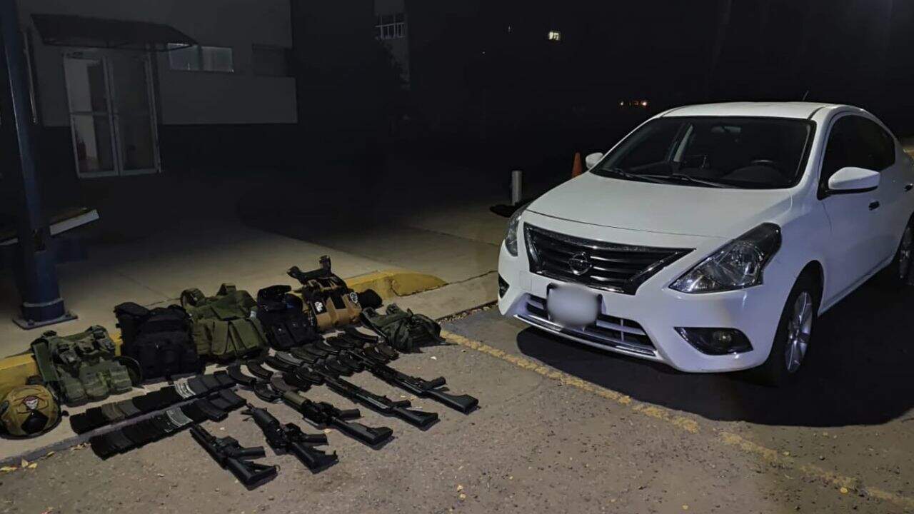 Entre lo incautado se encuentran cinco rifles y cargadores de alto calibre, además de chalecos tácticos.