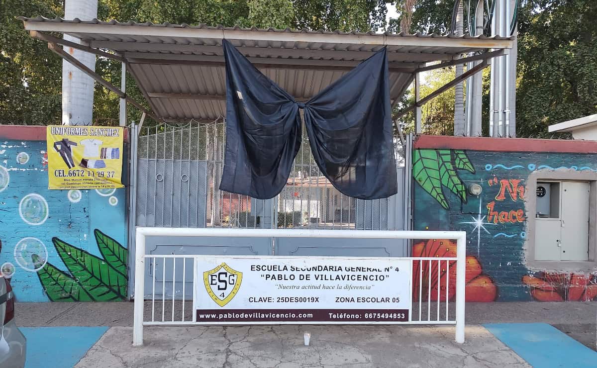 Con un lazo negro, la escuela Secundaria General #4 se vistió de luto por el asesinato de la menor de 12 años, en Culiacán.