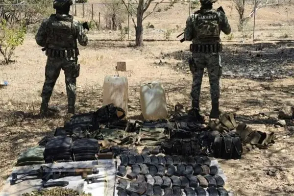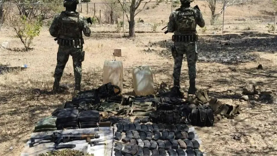 Localizan autoridades una persona sin vida, droga, armamento, artefactos explosivos y equipo táctico en El Rosario