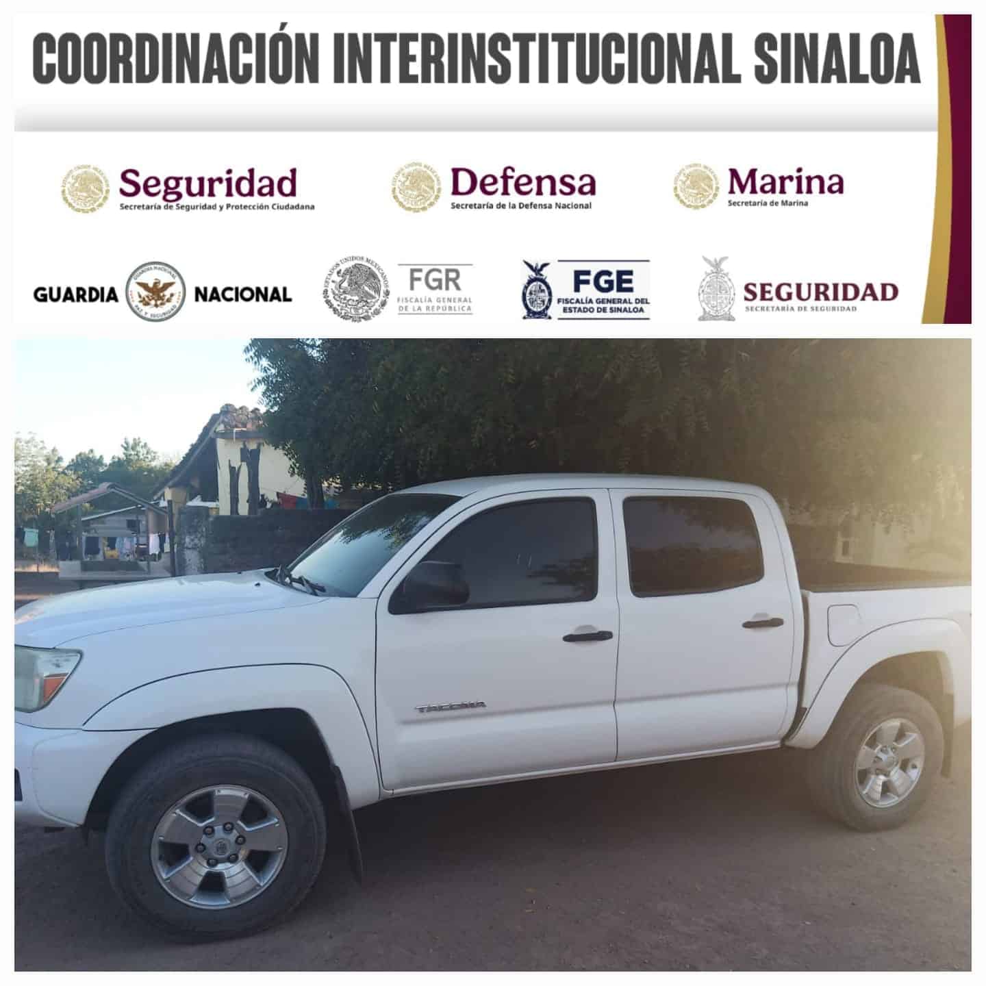 Aseguran en Culiacán y Cosalá a un civil, vehículos, armamento y equipo táctico