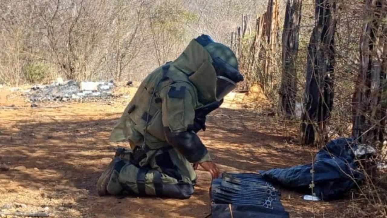 Durante recorridos terrestres que realizaba personal militar en la comunidad de Caminaguato, en la capital del estado, se localizaron 10 artefactos explosivos improvisados, los cuales fueron asegurados y desactivados por personal especializado.