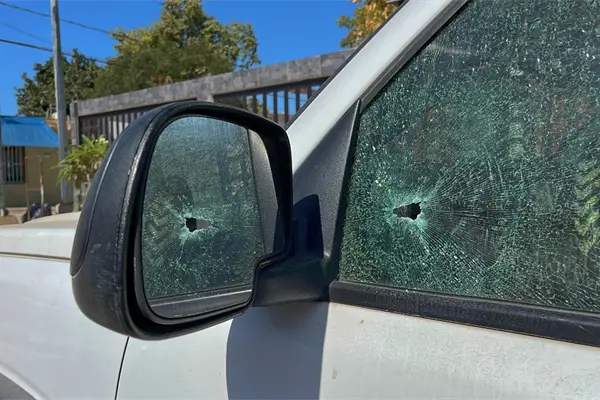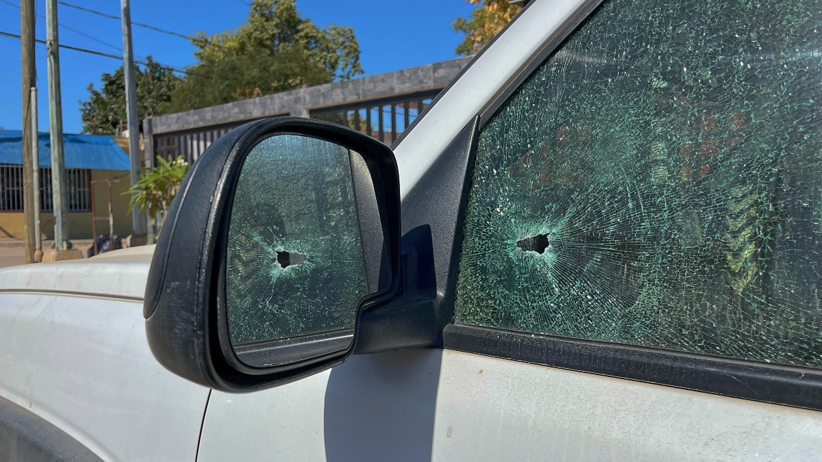 El hecho delictivo se habría originado en la colonia Labastida Ochoa, donde incluso, en la calle Calandria, una camioneta estacionada quedó con un impacto de bala en el vidrio del lado del piloto.