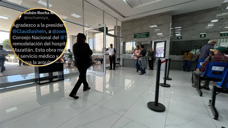 "Agradezco a la presidenta Claudia Sheinbaum, a Zoé Robledo y al Consejo Nacional del IMSS por la remodelación del hospital del IMSS en Mazatlán. Esta obra mejora la calidad del servicio médico y, al mismo tiempo, preserva la arquitectura histórica del edificio", escribió Rocha Moya en redes sociales.