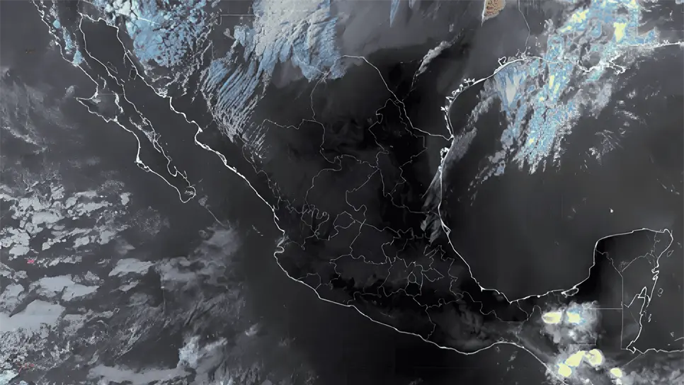 Finalmente, una circulación anticiclónica en niveles medios de la atmósfera y el bajo contenido de vapor de agua, mantendrán baja probabilidad de lluvia y ambiente diurno caluroso a muy caluroso en gran parte del territorio mexicano.