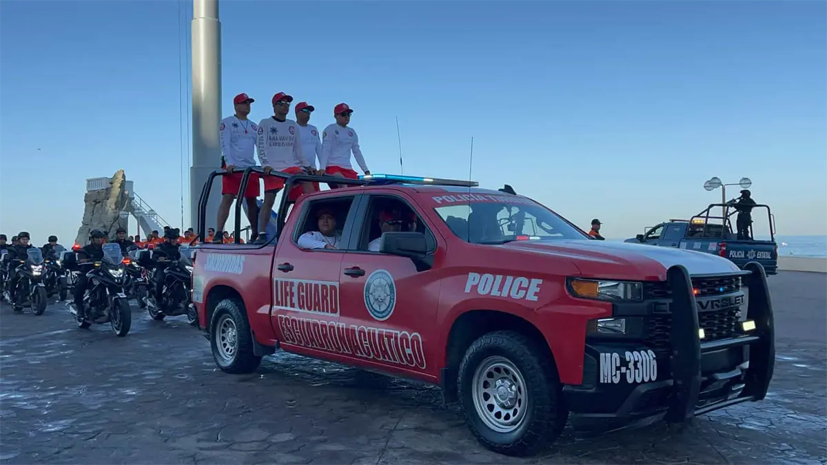 El director de Protección Civil en Sinaloa, Roy Navarrete Cuevas, encabezó junto a la presidenta municipal Estrella Palacios, el arranque del despliegue especial, destacando que la anticipación se debe al aumento importante de visitantes en las playas del municipio para esta temporada vacacional.