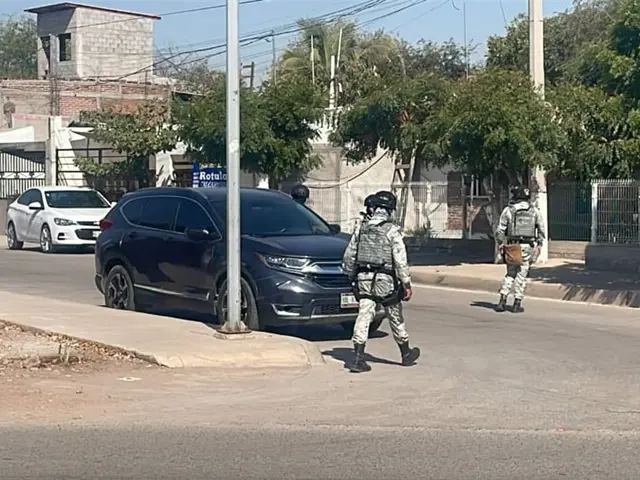 Militares aseguran una camioneta tras persecución en la colonia Jesús Valdez al sur de Culiacán.