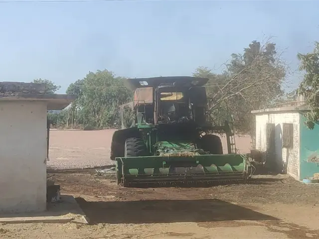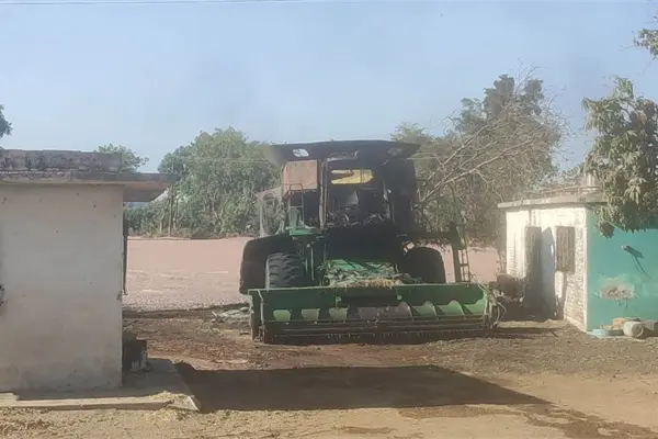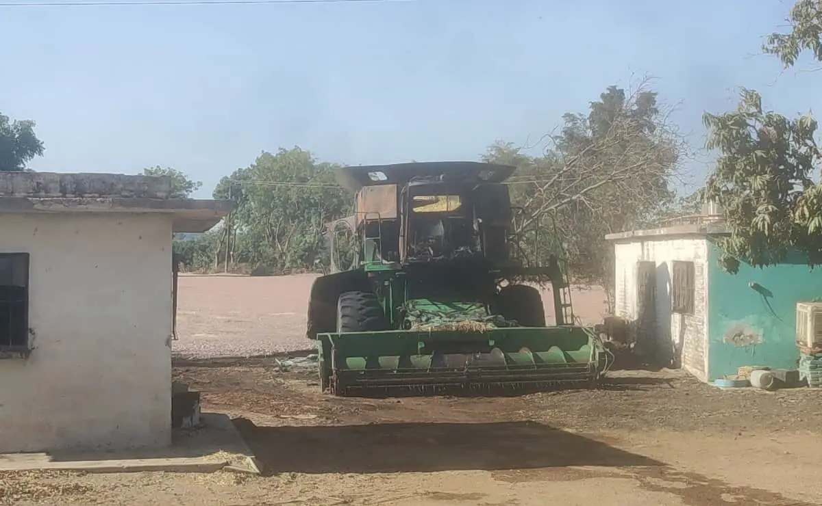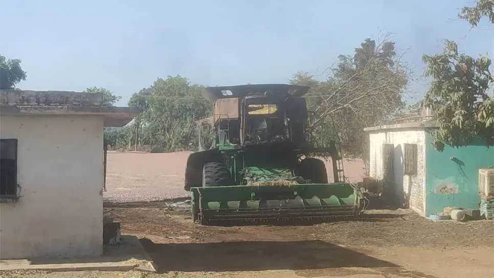 Una trilladora y una tonelada de frijol se queman a horas de la cosecha, en Ahome