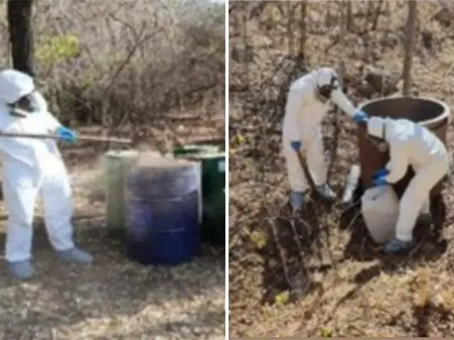 Personal militar localizó asentamientos utilizados para la fabricación de drogas sintéticas, junto con diversas sustancias químicas.