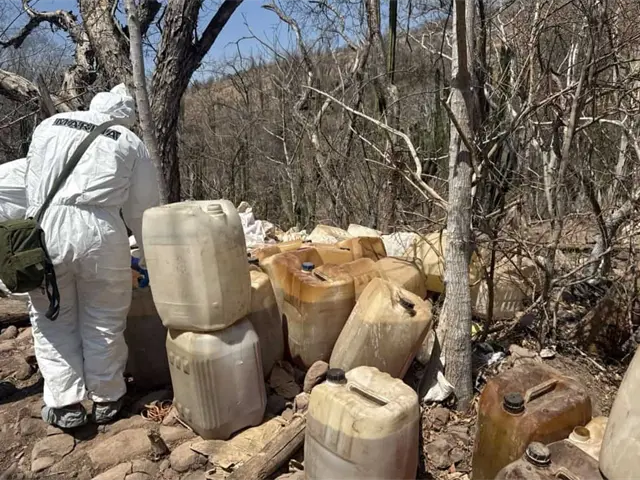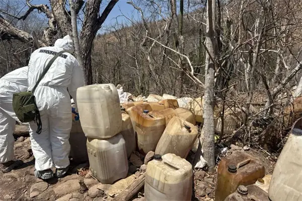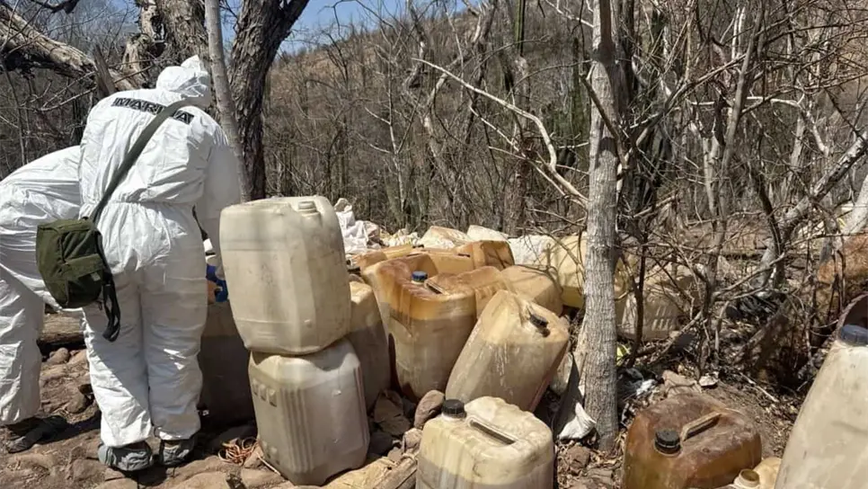 Se informó que fue durante recorridos de vigilancia terrestres en el poblado Corral Viejo, personal naval localizó un laboratorio clandestino para la elaboración de drogas sintéticas, de aproximadamente 25 x 25 metros.