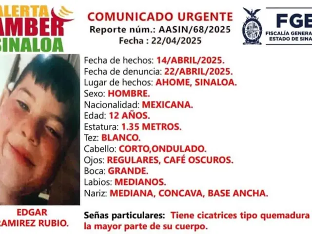 La Fiscalía General del Estado de Sinaloa emitió una Alerta Amber para localizar a Edgar Ramírez Rubio, un niño de 12 años que fue visto por última vez el pasado 14 de abril, cuando salió de su domicilio ubicado en la colonia Las Almendras, en la ciudad de Los Mochis.