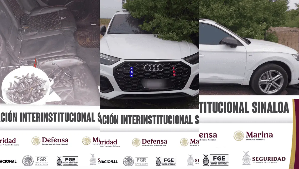 Aseguran un Audi robado, con poncha llantas y cargadores en Navolato
