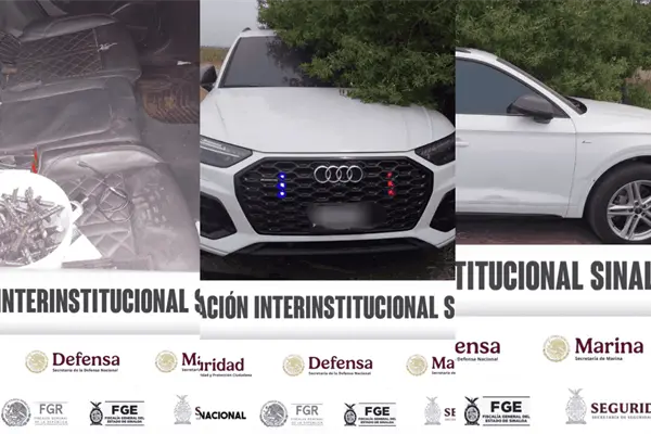 Elementos de la Secretaría de Seguridad Pública Estatal, a través de la Policía Estatal Preventiva, en coordinación con el Ejército Mexicano, la Guardia Nacional, la Secretaría de Marina, la Fiscalía General de la República y la Fiscalía General del Estado, aseguraron un vehículo robado y demás objetos de delito en Navolato.