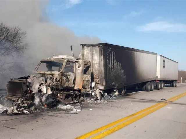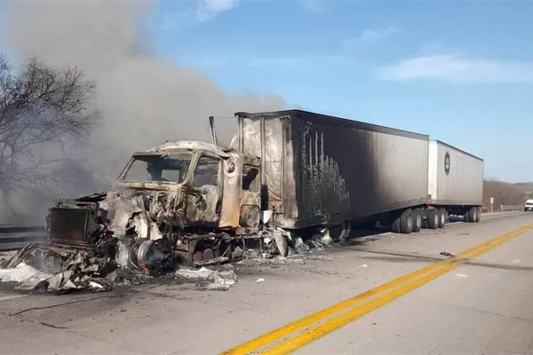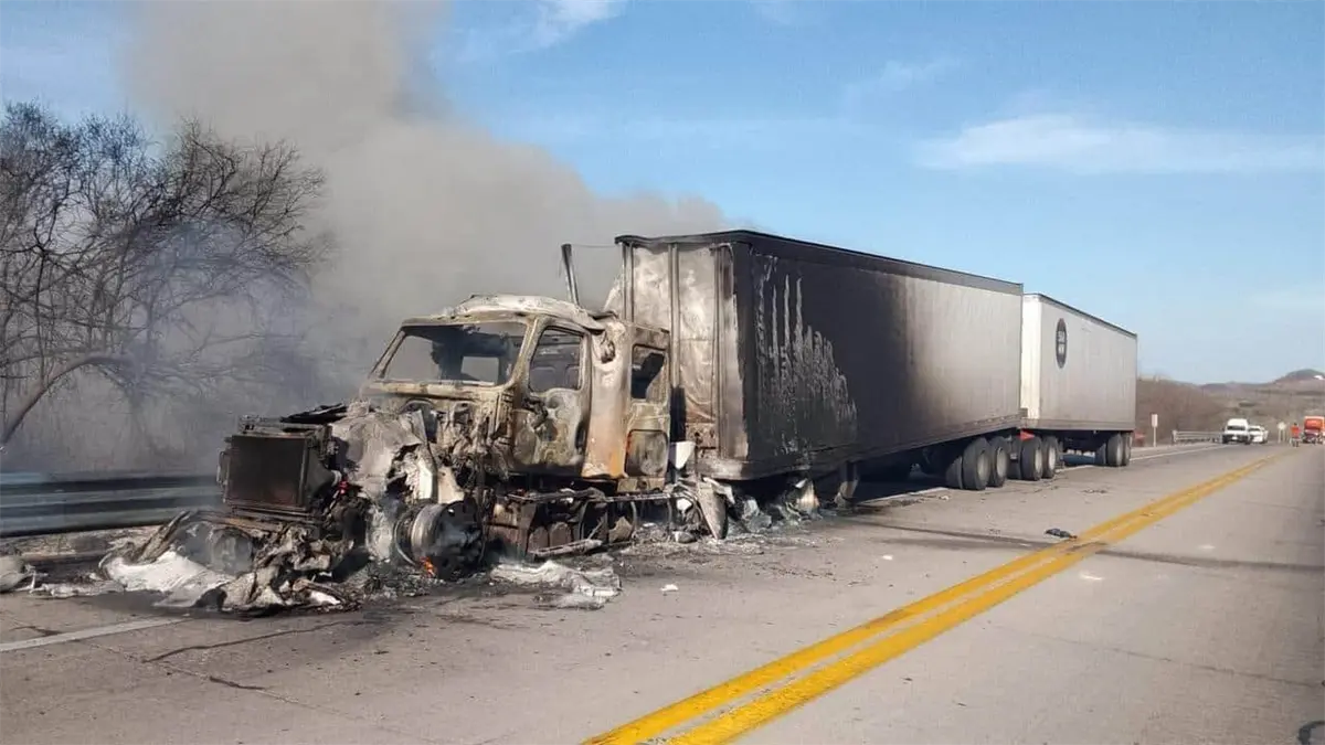 Mientras el conductor circulaba por la carretera, la parte delantera del tráiler comenzó a incendiarse, quemándose la cabina y la mitad de una de las cajas.