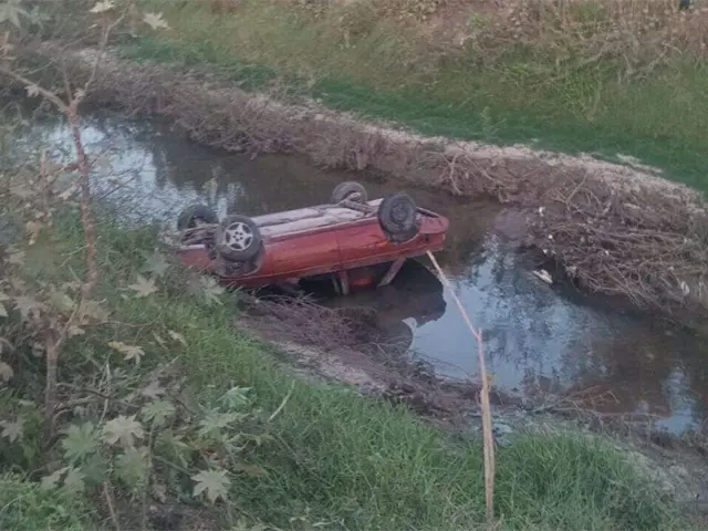 El accidente fue reportado alrededor de las 18:20 horas y elementos de Tránsito Municipal acudieron al bordo poniente del canal, donde localizaron un automóvil tipo sedán, color tinto, marca Chevrolet, con los neumáticos hacia arriba dentro del canal.