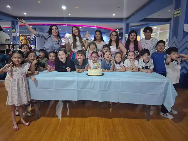 La fiesta se llevó a cabo en el boliche Bowl de Plaza Galerías San Miguel, donde decenas de niños del salón Primero B de la Escuela Primaria Velina León de Medina se divirtieron.