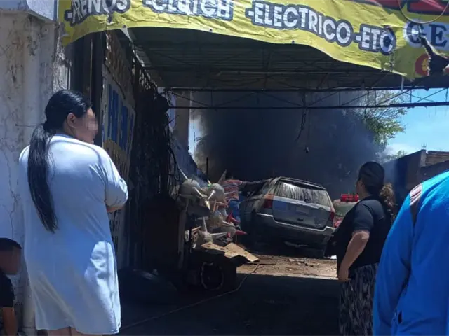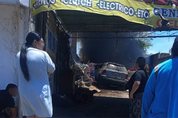 Minutos después supieron que se trataba de un incendio en un domicilio, pero debido a la intensidad del fuego había brincado a un tramo de un taller mecánico.