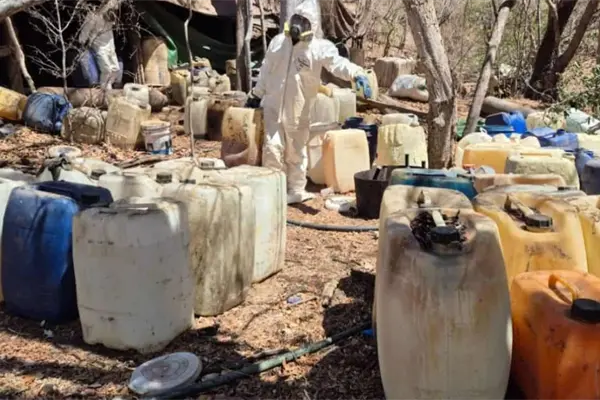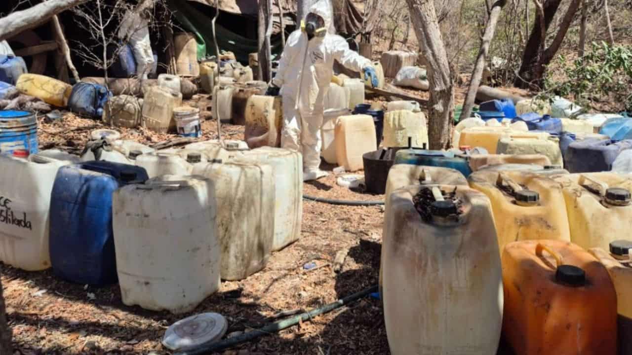 Dentro del marco de la operación “Búsqueda, Localización y Destrucción de Laboratorios Clandestinos”, el personal militar que efectuaba reconocimientos en el mencionado municipio localizó un laboratorio y seis áreas de concentración de sustancias químicas para la elaboración de drogas sintéticas que contenían lo siguiente:
