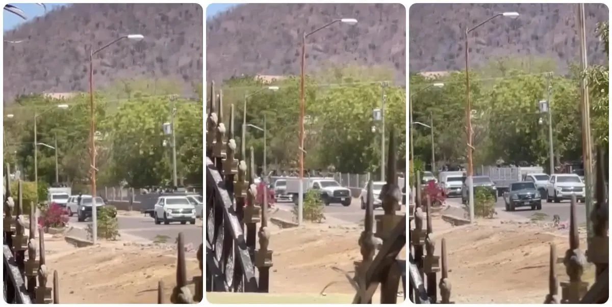 De acuerdo con videos captados por residentes de la zona, al menos una decena de vehículos —entre ellos camionetas doble rodado con redilas, algunas artilladas, y pick ups— fueron observados circulando por las principales calles de la sindicatura.