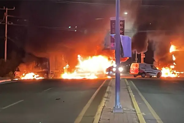 Posteriormente, procedieron a incendiar los vehículos pesados, entre ellos dos tractocamiones y bloquearon el paso de la carretera federal.