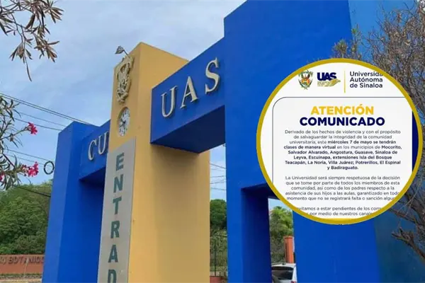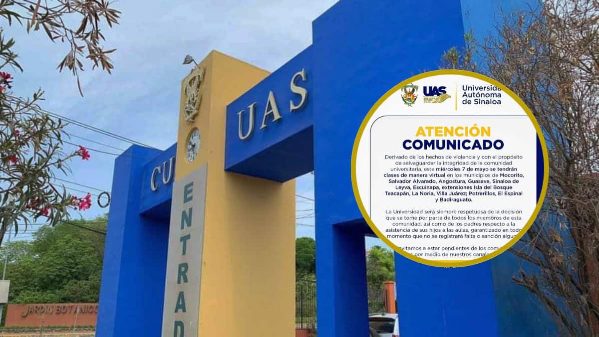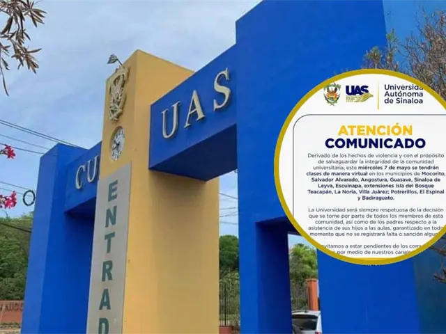 Derivado de los hechos de violencia presentados en las últimas horas, la Universidad Autónoma de Sinaloa (UAS) anunció clases virtuales en 7 municipios y 6 comunidades, para este miércoles 7 de mayo.