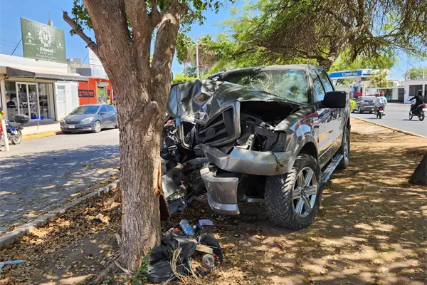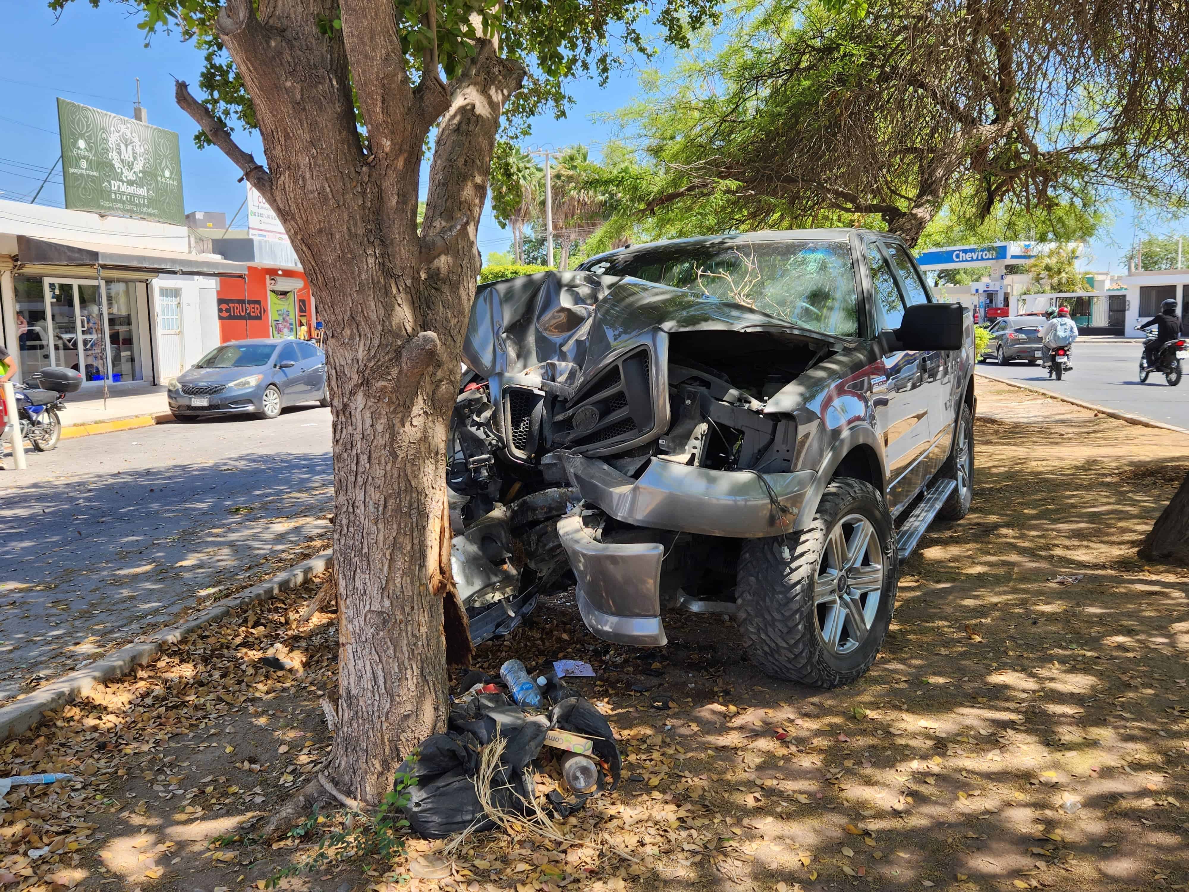 Una camioneta terminó impactada contra un árbol luego de que su conductor perdiera el control del volante en las inmediaciones de la Colonia Álamos Country de Los Mochis durante la tarde de este jueves.