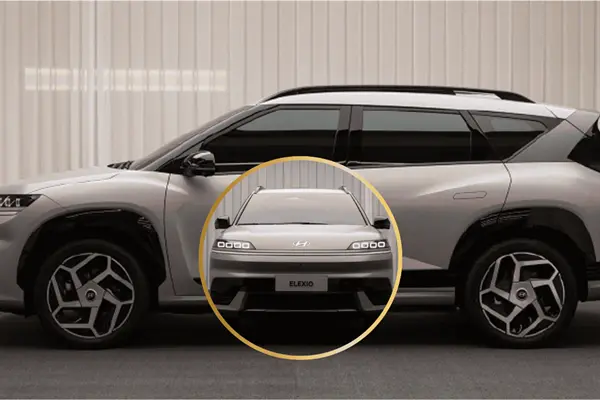El Hyundai Elexio rompe con los códigos visuales tradicionales de la marca. Presenta una carrocería limpia y minimalista, sin parrilla frontal, faros LED en bloques cuadrados, y una franja lumínica que cruza el frente. En la parte trasera, destacan los pilotos en forma de curva y un portón con diseño robusto y vertical.